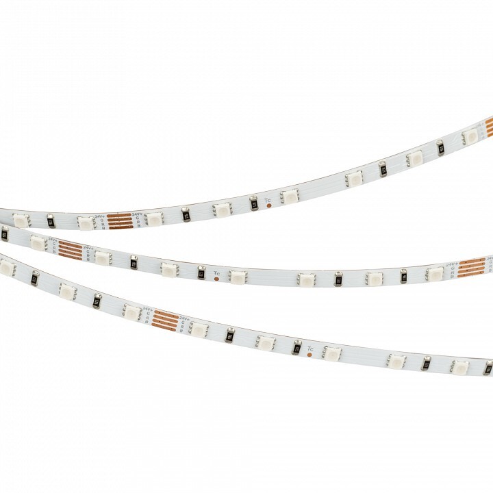 Светодиодная гибкая лента RT-G60, открытая IP20. Светодиоды 3838, 60 шт/м ( 300 шт на 5 м), белая плата 5 мм, скотч 3M. Цвет RGB , угол 120°. Питание 24V, мощность 6.6 Вт/м ( 33 Вт на 5 м). Размеры 5000 x 5 x 1.9 мм. Мин.отрезок 100 мм, 6 светодиодов.