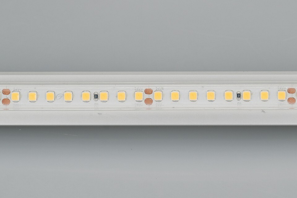 Светодиодная гибкая лента RTW-A160, герметичная IP67 (PS-силиконовая экструзия). Светодиоды 2835, 160 шт/м (800 шт на 5 м), белая плата 10 мм, красный скотч 3М. Цвет ТЁПЛЫЙ 3000 K, цветопередача CRI>85, угол 120°. Питание 24V, мощность 12 Вт/м (60 Вт на 5 м). Размеры 5000x10x5 мм. Мин.отрезок 50 мм, 8 светодиодов.