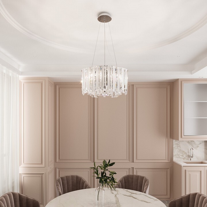 Люстра подвесная Eurosvet Radiance – элегантное решение для вашего интерьера! Хромированное основание из металла и хрустальные элементы создадут атмосферу изысканности и уюта. С мощностью 240 Вт (макс. м-ть одной лампы 40Вт) обеспечивает яркое освещение пространства. Подходит для современных интерьеров. Установка проста благодаря монтажной пластине. Безопасна по стандарту защиты IP20. Дизайн подчеркнёт статус владельца, а гарантия 12 месяцев обеспечит спокойствие покупки.