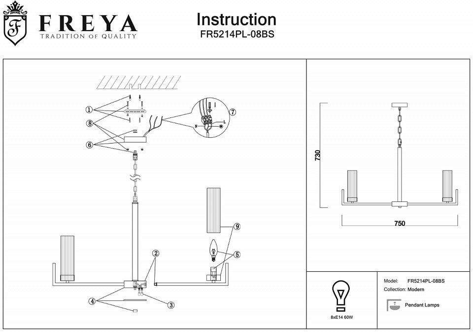 Бренд Freya. Стиль современный. Страна Германия. Основание металл. Цвет основания латунь. Материал плафона стекло. Цвет плафона прозрачный. . . . Высота, мм 730. Цоколь E14. . . . Количество ламп 8. Мощность лампы, Вт 60. Мощность общая, Вт 480. Напряжение питания, В 220. IP 20. . Гарантия, месяцы 12. . . . .