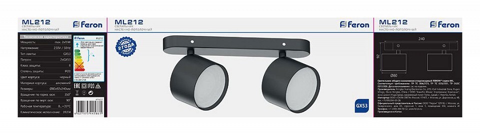 Бренд Feron. Стиль современный. Страна Китай. Основание металл. Цвет основания черный. Материал плафона акрил. Цвет плафона белый. Длина, мм 240. Ширина, мм 440. . Высота, мм 92. Цоколь GX53. Площадь освещения м2 15. . . Количество ламп 2. Мощность лампы, Вт 15. Мощность общая, Вт 30. Напряжение питания, В 220. IP 20. . Гарантия, месяцы 12. . . . .