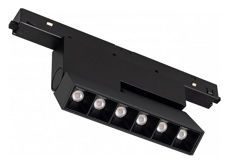 Светильник для магнитных треков MAG-ORIENT шириной 26 мм. Мощность 6 Вт, св. поток 250 лм, 42 лм/Вт, дневной 4000 K, CRI>90, угол 30°, напряжение питания 48 В. Черный прямоугольный корпус из металл, экран поликарбонат, степень защиты IP20. Размер: длина 204 мм, ширина 23 мм, высота 99 мм. Монтаж на трек MAG-ORIENT. Пульсация <1%.